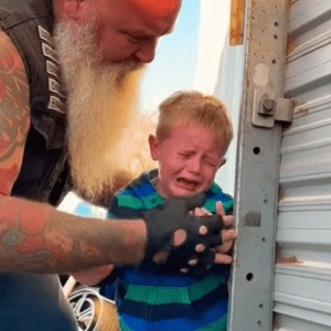A Biker’s Quick Thinking: How Courage and Strength Saved a Child from a Warehouse Door