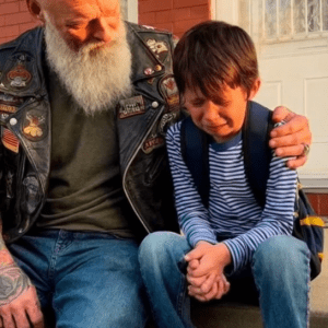 The Unexpected Encounter On A Quiet Street He was tightening a bolt on his Harley when he noticed the boy. Maybe nine, maybe ten years old—thin, quiet,…