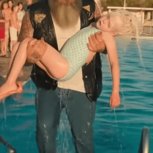 The Biker Who Dove into the Pool: The Day a Rough Stranger Became a Little Girl’s Guardian Angel