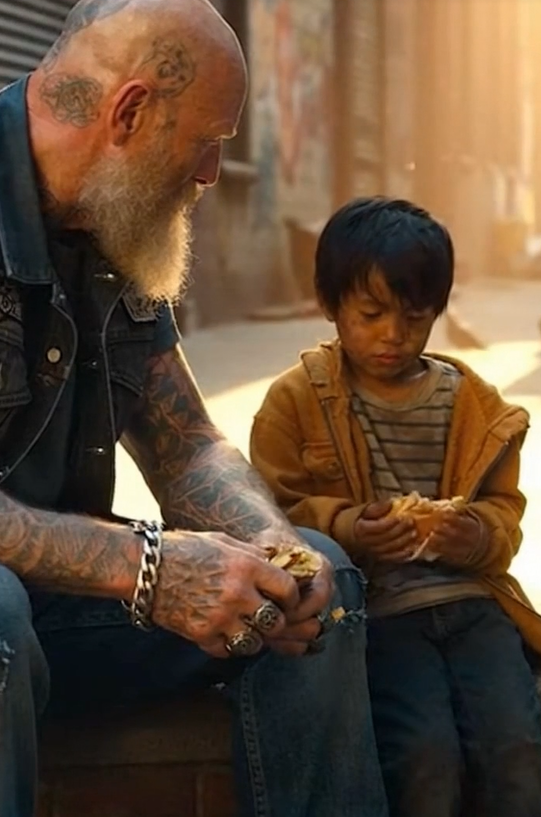 Jake felt something deep in his chest shift. Long before the tattoos, the long rides, and the hardened exterior, he had been a hungry kid too—a kid who learned how to make one meal feed two mouths.