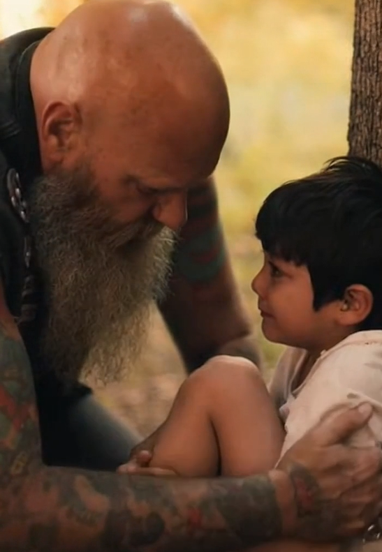 What makes this moment powerful isn’t the biker’s tough exterior or the dramatic appearance of a roaring Harley. It’s the simple humanity behind it. A grown man saw a child suffering and chose not to look away. He didn’t offer empty words or judgment. He offered presence. Safety. Compassion. And the kind of reassurance that can reshape a young life.