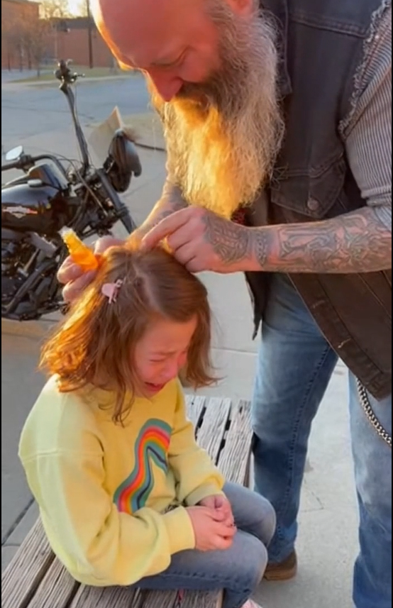 “The Sweet Rescue: A Biker’s Gentle Touch” isn’t about grand heroics or dramatic stunts. It’s about the quiet, meaningful ways ordinary people can make life a little brighter. Mason Carter’s patience, care, and gentle action turned a sticky, stressful moment into laughter and relief. In a fast-moving world, small gestures of kindness—like untangling cotton candy from a child’s hair—remind us that everyday heroes exist in all forms, and sometimes, they ride in on a Harley.