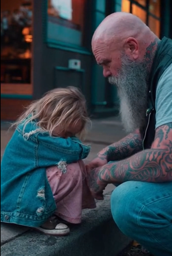 Eventually, she leaned toward him, slow and unsure, like someone reaching for warmth after a long winter. Only then did he open his arm, letting her rest her head against his shoulder. Her tears soaked into his leather vest, but he didn’t move. He didn’t rush her. He didn’t try to fix what wasn’t his to fix.