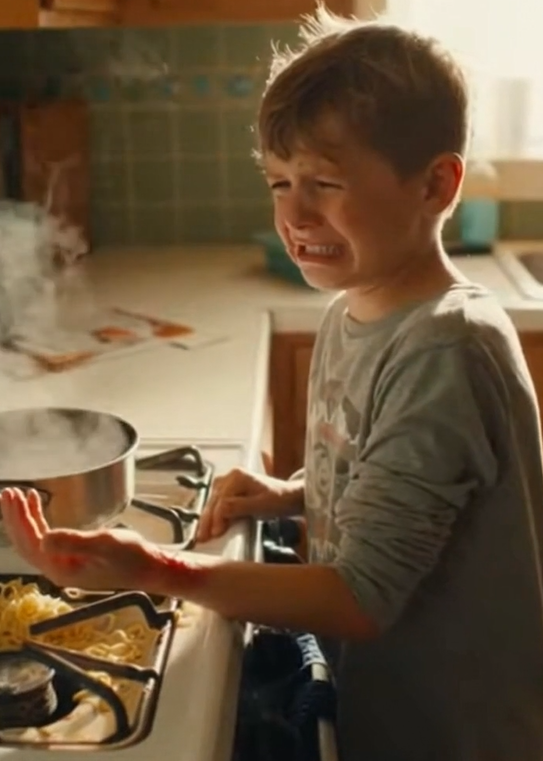 The boy sobbed harder. “I was hungry… no one was home… I tried to make noodles… the hot water spilled…”
