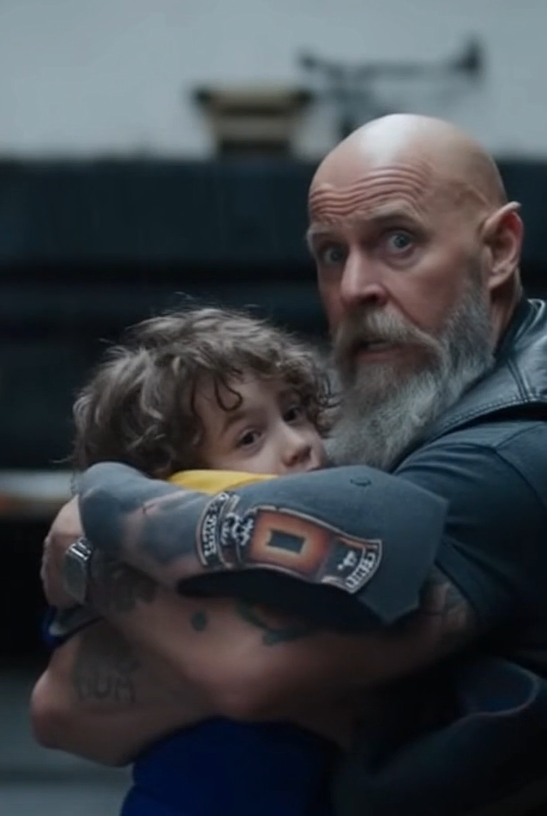 The boy trembled violently in his arms, clutching the biker’s vest like it was the only solid thing he could hold onto. His small heartbeat thudded hard against the biker’s chest—fast, frightened, and overwhelming.