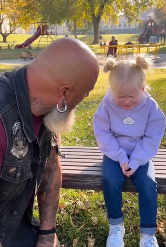 “Do you play with the other kids?” the biker asked, keeping his tone soft.