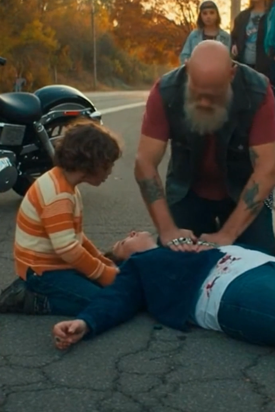 The biker knelt beside him, keeping the woman stable, monitoring her breathing, making sure the boy wasn’t alone for a single second.