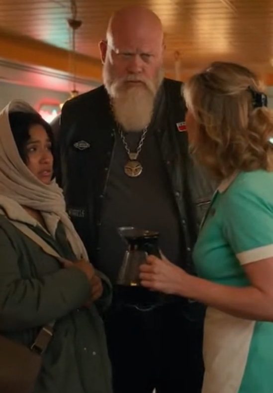Long rides have a way of dulling a man’s senses — the hum of the engine, the stretch of empty highway, the steady rhythm of the miles. By the time the biker pulled into the small roadside diner, he was tired, hungry, and looking for nothing more than a hot cup of coffee and a moment of rest. It was the kind of classic American stop: flickering neon signs, faded red stools, and the smell of brewed coffee drifting through the doorway. A place where no one usually cared who you were or where you came from.