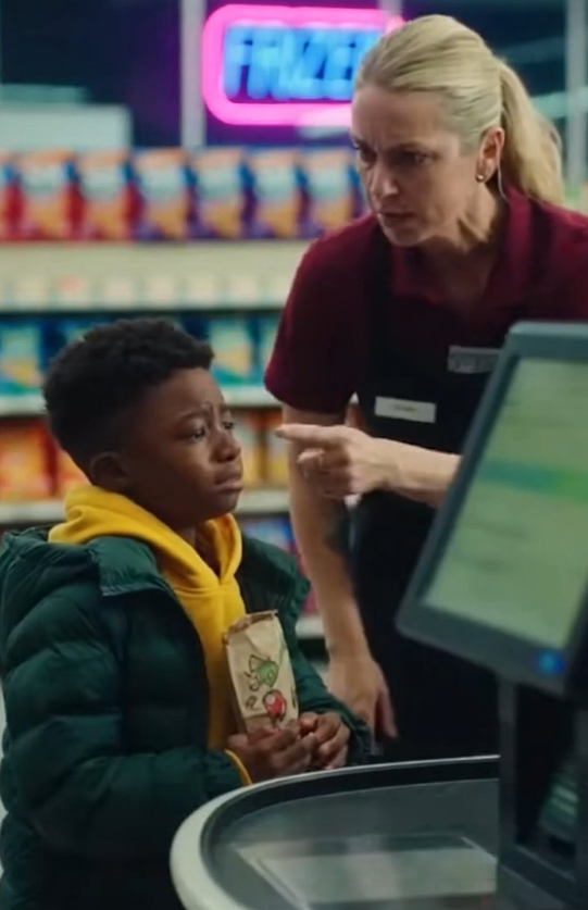 The boy stood frozen in the snack aisle, gripping a small bag of chips in one hand and a wrinkled five-dollar bill in the other. He couldn’t have been more than ten. His dark curls peeked from under his hoodie, and his eyes darted nervously toward the store clerk trailing him from only a few steps behind.
