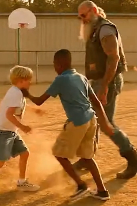 “I grew up fighting,” he said. “Different skin, same anger. Took me a long time to learn what it costs.”
