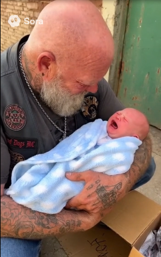 Ridge froze for a second. A man who had seen battlefields and buried brothers suddenly felt his knees weaken. “Jesus…” he muttered, pulling off his gloves and reaching into the box. The baby’s skin was icy, his breathing shallow. Without thinking, Ridge unzipped his leather jacket, pressing the infant to his chest for warmth.