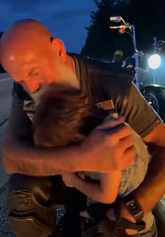 Back up on the highway, he wrapped his leather jacket around the child’s shoulders and gently adjusted a helmet to keep him safe. The boy clung to the vest as if it were the only solid thing in his world.
