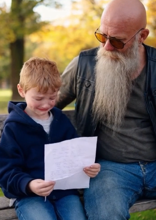 The biker froze. Not because he knew the man who’d written it—but because he understood the emotion behind it too well. The guilt. The running. The fear of not being enough. And he recognized the look in the boy’s eyes even more.