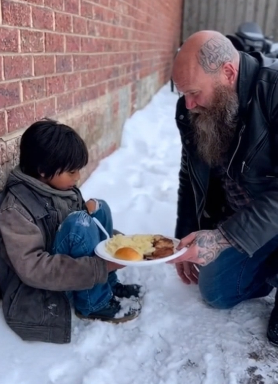 Grizzly watched as the boy devoured the burger, his breath fogging in the frozen air. From his saddlebag, the biker pulled out a spare blanket and wrapped it gently around the kid’s shoulders.