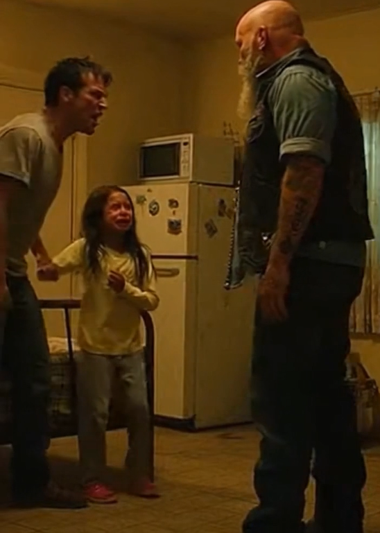 The biker kept his voice even. “I heard a kid crying. I need to make sure she’s okay.”