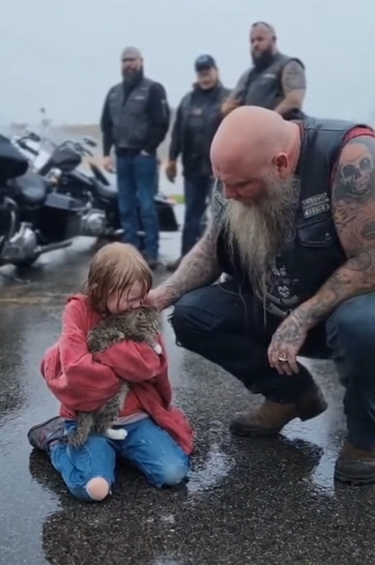 Jake helped her onto the bike, making sure Shadow was settled in her lap. The engine roared to life, the warmth from the Harley a stark contrast to the cold, wet world around them. As they rode through the city streets, the girl’s small arms wrapped around Jake, holding her cat close.
