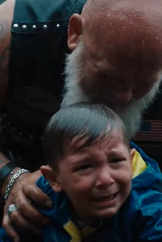 The biker leaned close, cupping the boy’s cheek with a hand still trembling from effort.
