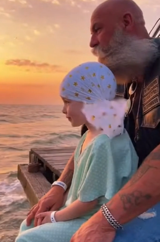 The biker carried her down the sand, her tiny hospital socks dangling from his arms. Waves rolled in like whispers. The morning light painted the whole beach gold.