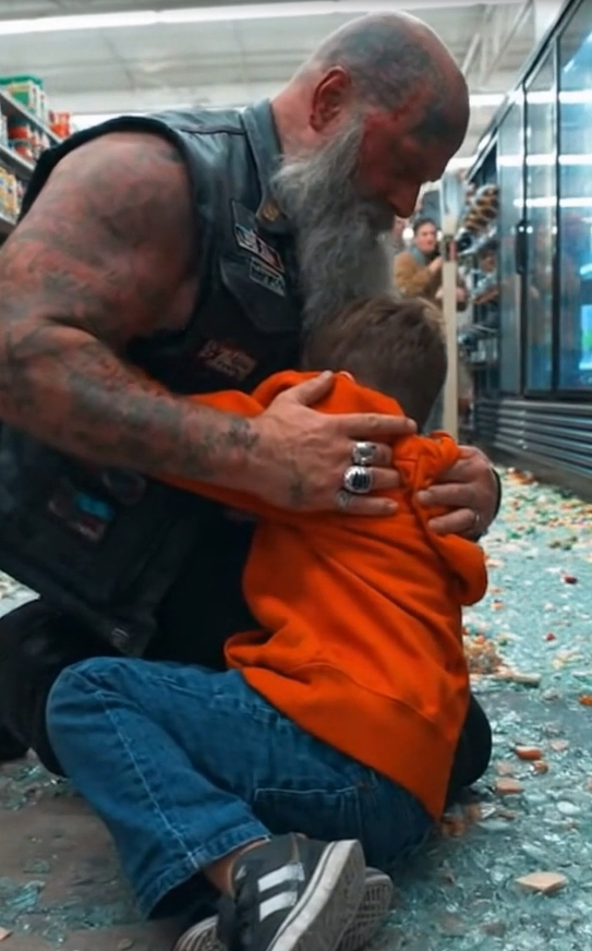 He didn’t plan to be anyone’s hero. He didn’t analyze or think about consequences. He just moved — because that’s what the road teaches you: when someone’s in danger, you don’t hesitate. You cover. You protect. You stand tall, no matter the cost.