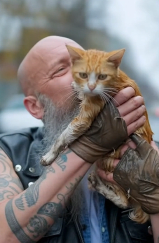 A week later, a video hit social media — a clip of a muddy, tattooed biker pulling a kitten from a storm drain. It spread fast. Within hours, thousands of people had watched and shared it.
