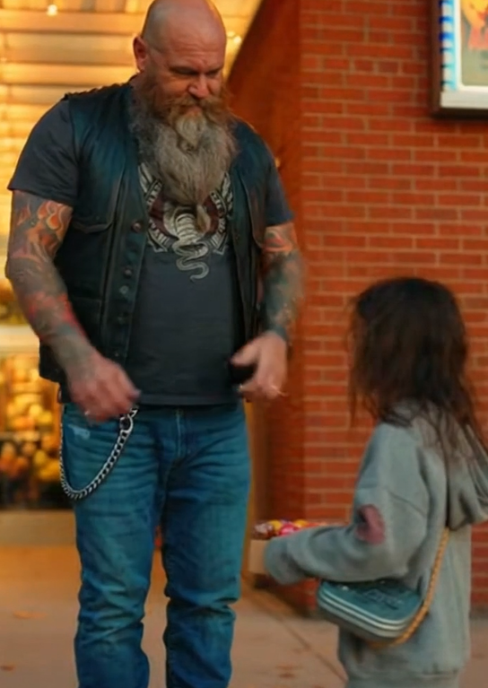 Across the street, leaning against his Harley with a ticket already in hand, a biker watched the scene unfold. He hadn’t planned on anything more than catching a movie after a long ride. But something about the little girl’s quiet resilience hit him harder than any curve or storm he’d ever faced on the road.