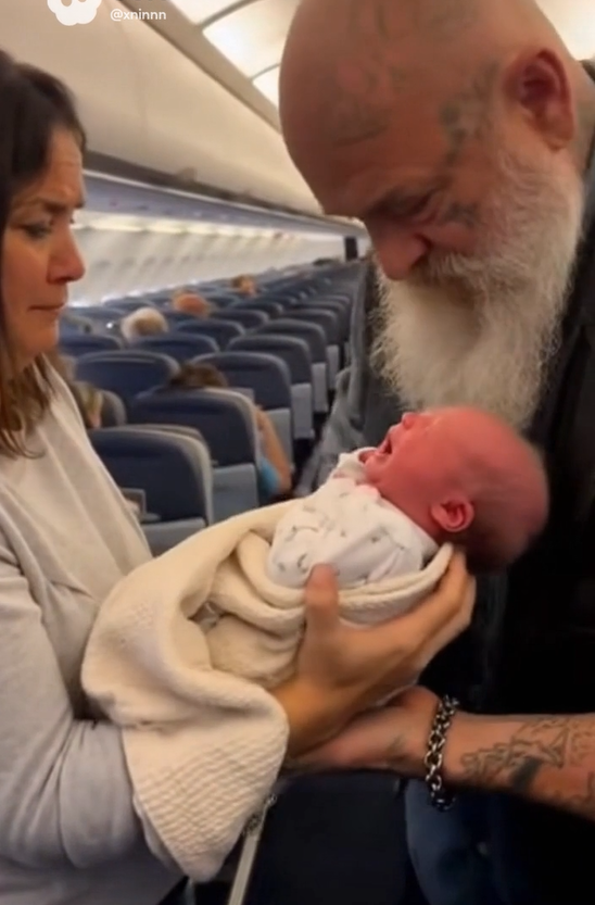 At 30,000 feet above the world, surrounded by strangers, a crying child met a biker with a silver coin and a soft voice. And in that small, fleeting moment, humanity found its rhythm again.