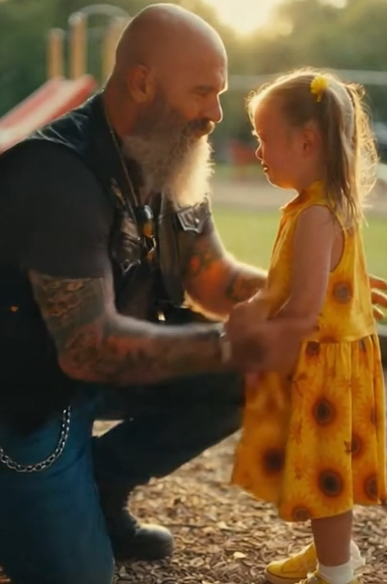 He climbed onto his Harley, started the engine, and rolled out of town with a lighter heart. The image of a little girl in a sunflower dress stayed with him long after the road stretched open before him—her smile a reminder that one small act of kindness can outshine even the brightest summer sun.