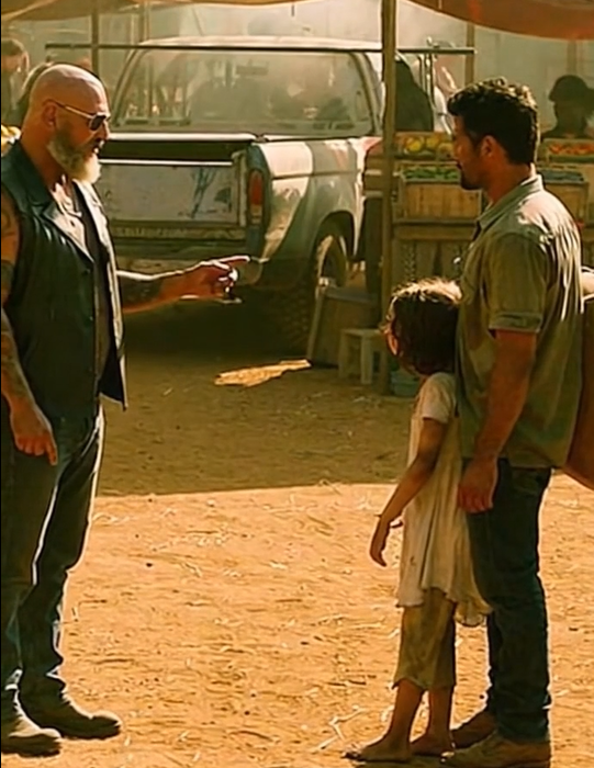His eyes locked onto the source of the scream. Near a row of produce stands, a man was dragging a young girl—barely twelve—by the arm. She stumbled as she tried to resist, tears streaking down her cheeks while the man pulled her harder.