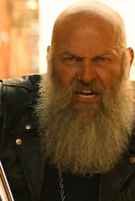 Bear climbed off the bike in one fluid motion, boots hitting the ground hard. Dust curled around him as he straightened to his full height—massive, leather-clad, tattooed, radiating a controlled fury that could stop a grown man cold.