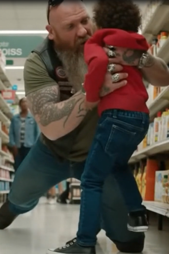 For a moment, even the supermarket hum seemed to pause. People stared at the biker who had thrown himself across the floor like he was saving a teammate instead of a stranger’s child.