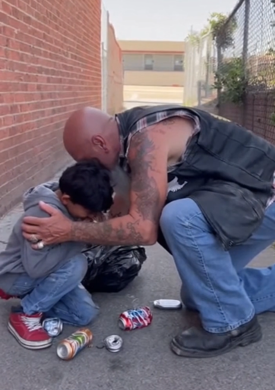 Together, the man and the boy finished cleaning the street, filling the bag until it was heavy with cans. When they were done, the biker pulled out a folded twenty-dollar bill and pressed it into the boy’s hand.